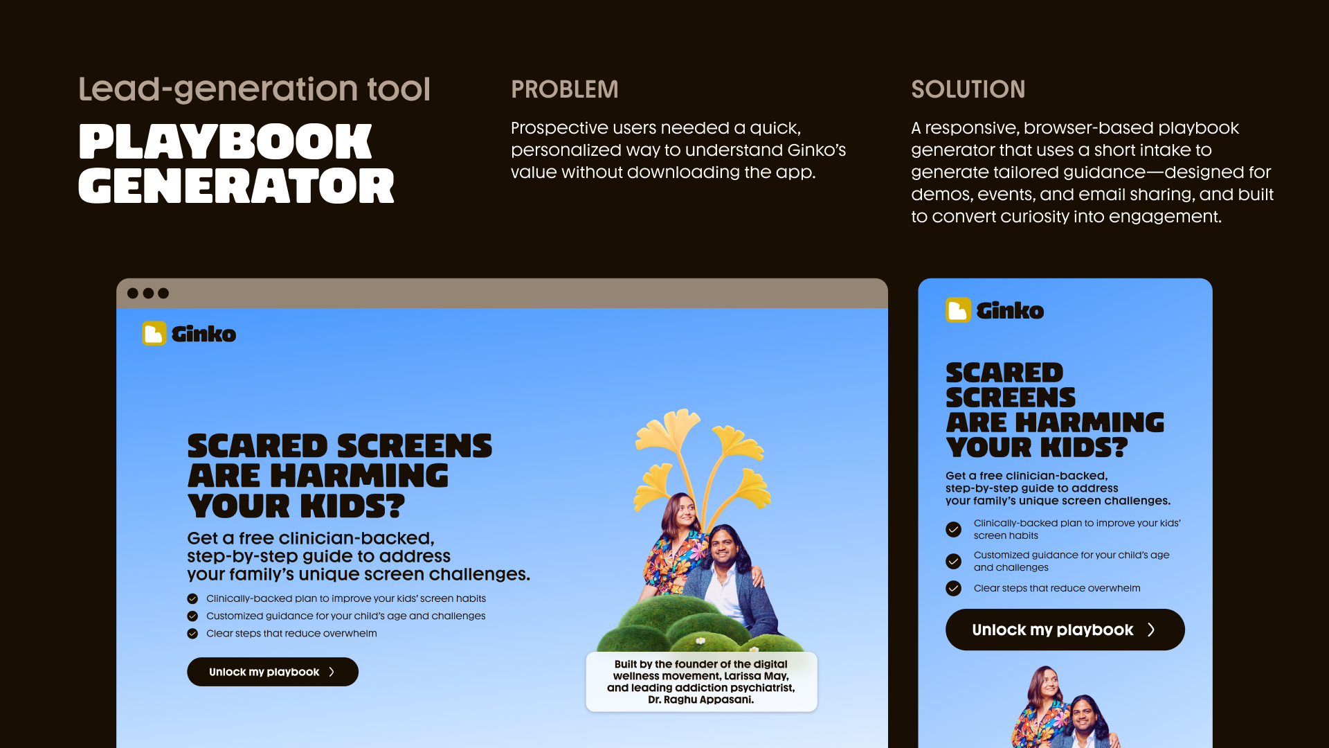 I joined Ginko during its early, MVP phase and led the design of two key experiences: the app’s onboarding flow and a browser-based “playbook generator,” a free lead-generation tool used to introduce users to the product’s value.UI/UX